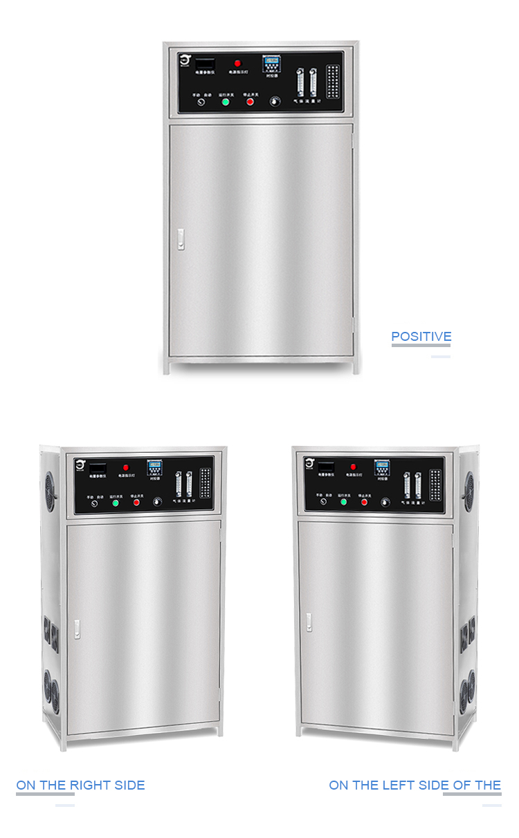 7. This product adopts silent oil-free compressor, built-in cold dry filtration system, PSA oxygen generator, can efficiently and stably provide high purity oxygen to ozone generator, the ozone concentration is high, up to 80 MG/L, suitable for the production of high concentration ozone water, difficult wastewater treatment, bleaching, etc